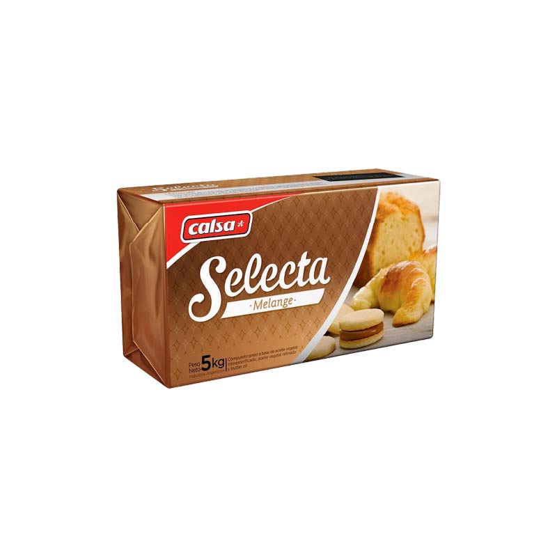 Melange es una nueva categoría en productos grasos, una nueva solución que combina los mejores ingredientes para acercarte el sabor, aroma y suavidad de la manteca con la plasticidad que siempre buscaste. La primera y única Melange del país que te permite ofrecerle a tus clientes una calidad diferencial sin complejizar tu trabajo. Podes elaborar productos Premium insuperables con una combinación única de ingredientes seleccionados. Gracias a su delicadeza con Selecta Melange tus elaboraciones se van a destacar.
