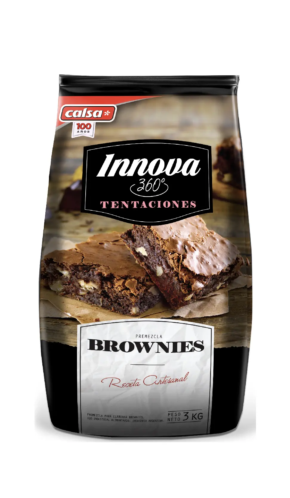 Por cada 1 kg de premezcla Brownie Innova 360° agregar 100 g de aceite, 170 gr de agua, 170 gr de huevo y 200 gr de nueces (opcional).